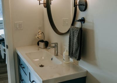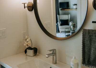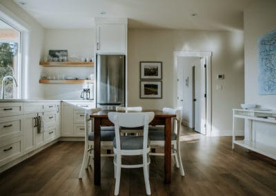 We worked with the clients to manage the ALR land, municipal, and riparian restrictions. As a result, developing this property posed a unique challenge. For instance, there was no kitchen in the design in order to meet the municipality’s restrictions. However, with a fully functional bar for comfortable wine & cheese pairings, the space doesn’t feel lacking.