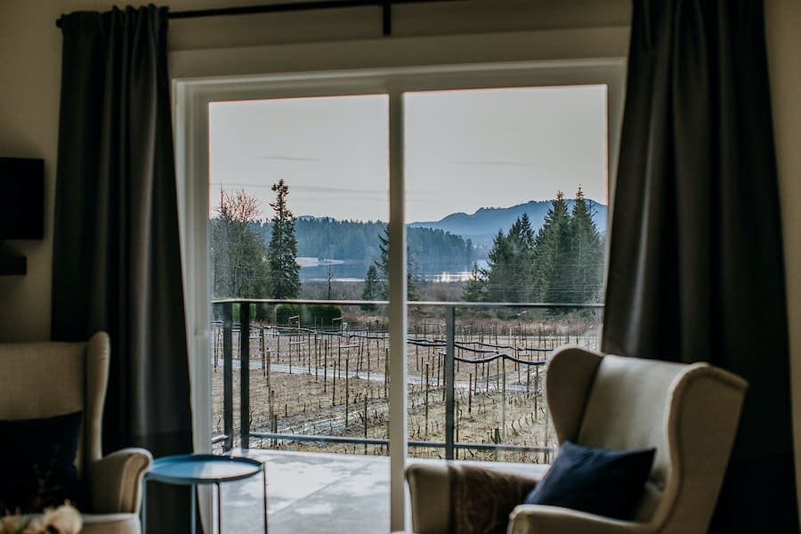 The Emandare Vineyard Guest House was designed and built as a restful haven. With a view of Somenos Lake and 8.5 acres of the vineyard from your bedroom window, this location is surrounded by the delights of the Cowichan Valley. With 2 spacious bedrooms and 2 bathrooms, this custom home makes a wonderfully luxurious getaway. The exterior style is farmhouse.