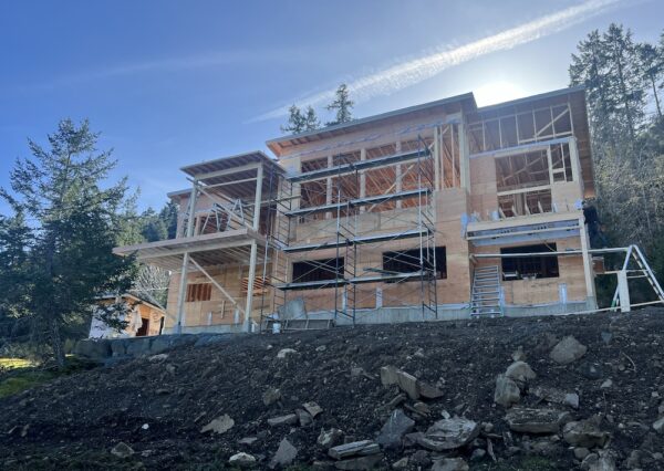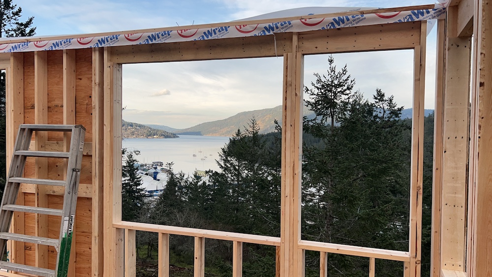 The Maple Bay Marina home is a two-level residence currently being built. It will feature beautiful views of the mountains and ocean.
