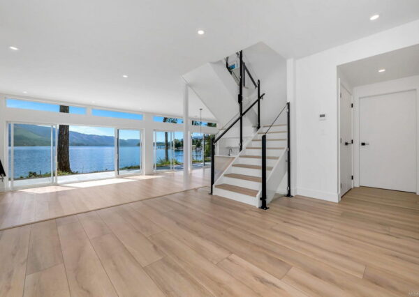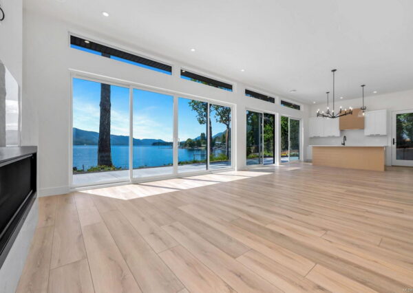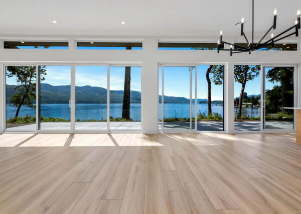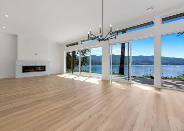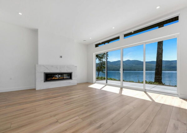 The ”Epitome of waterfront” living, boasting breathtaking lake views from all major rooms! This meticulously designed custom home seamlessly integrates luxury and comfort. The large, private, flat property faces west, showcasing a walk-on beach with deep water moorage and miles of spectacular, unobstructed lake views, which can be seen from all major rooms.